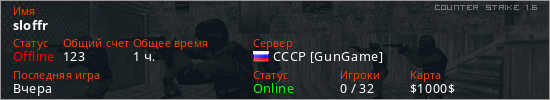 Играет на Counter Strike 1.6 сервере. Страна: РоссияПервый раз замечен 15:57 03.10.2025
