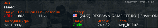Играет на Counter Strike 1.6 сервере. Страна: СШАПервый раз замечен 18:47 06.03.2025