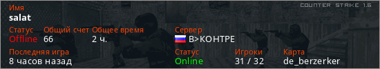Играет на Counter Strike 1.6 сервере. Страна: РоссияПервый раз замечен 06:32 09.01.2026