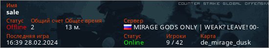 Играет на Counter Strike Global Offensive сервере. Страна: РоссияПервый раз замечен 21:58 26.02.2024