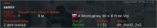 Последний раз был в сети 2 дня назад Игрок с таким ником замечен на 32 серверах