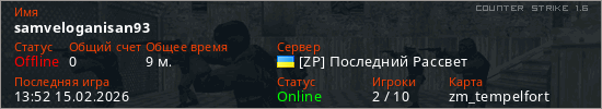 Играет на Counter Strike 1.6 сервере. Страна: УкраинаПервый раз замечен 11:42 15.02.2026
