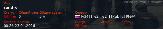 Играет на Counter Strike Source сервере. Страна: РоссияПервый раз замечен 23:56 22.01.2026