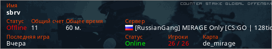 Играет на Counter Strike Global Offensive сервере. Страна: РоссияПервый раз замечен 08:49 21.02.2026