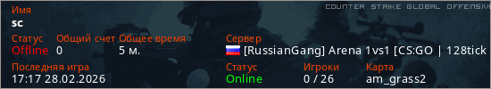 Играет на Counter Strike Global Offensive сервере. Страна: РоссияПервый раз замечен 17:11 28.02.2026