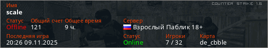 Играет на Counter Strike 1.6 сервере. Страна: РоссияПервый раз замечен 16:11 20.10.2019