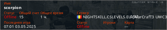 Играет на Counter Strike 1.6 сервере. Страна: РумынияПервый раз замечен 12:14 09.10.2024
