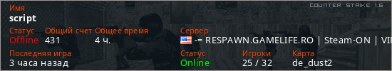 Последний раз был в сети 10 минут назад Игрок с таким ником замечен на 10 серверах
