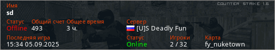 Последний раз был в сети 15:34 05.09.2025 Игрок с таким ником замечен на 33 серверах