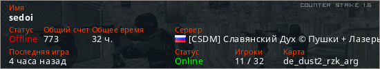 Последний раз был в сети 2 часа назад Игрок с таким ником замечен на 7 серверах
