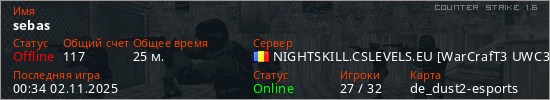 Играет на Counter Strike 1.6 сервере. Страна: РумынияПервый раз замечен 02:26 26.04.2025