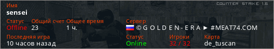 Последний раз был в сети 9 часов назад Игрок с таким ником замечен на 30 серверах