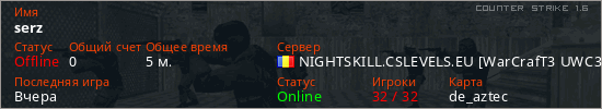 Последний раз был в сети Вчера Игрок с таким ником замечен на 5 серверах