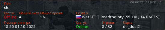 Играет на Counter Strike 1.6 сервере. Страна: РоссияПервый раз замечен 17:23 11.08.2023