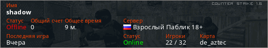 Последний раз был в сети Вчера Игрок с таким ником замечен на 52 серверах