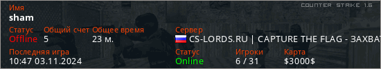 Последний раз был в сети 10:47 03.11.2024 Игрок с таким ником замечен на 9 серверах