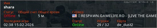 Играет на Counter Strike 1.6 сервере. Страна: СШАПервый раз замечен 01:13 15.02.2026