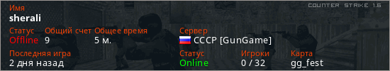 Последний раз был в сети 2 дня назад Игрок с таким ником замечен на 6 серверах