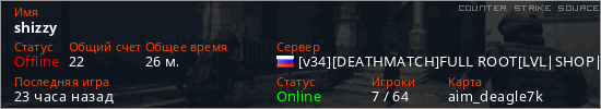 Играет на Counter Strike Source сервере. Страна: РоссияПервый раз замечен 18:26 27.08.2025