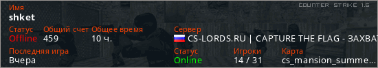Играет на Counter Strike 1.6 сервере. Страна: РоссияПервый раз замечен 17:16 09.09.2021