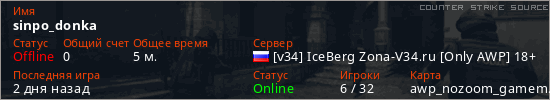 Играет на Counter Strike Source сервере. Страна: РоссияПервый раз замечен 13:28 08.03.2026