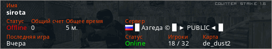 Последний раз был в сети Вчера Игрок с таким ником замечен на 12 серверах