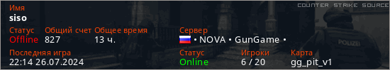 Играет на Counter Strike Source сервере. Страна: РоссияПервый раз замечен 21:10 11.08.2022