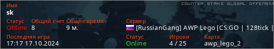 Играет на Counter Strike Global Offensive сервере. Страна: РоссияПервый раз замечен 13:45 17.10.2024