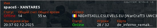 Играет на Counter Strike 1.6 сервере. Страна: РумынияПервый раз замечен 17:11 01.12.2025