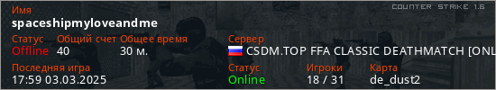 Играет на Counter Strike 1.6 сервере. Страна: РоссияПервый раз замечен 11:33 07.10.2024