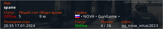 Играет на Counter Strike Source сервере. Страна: РоссияПервый раз замечен 20:53 07.05.2023