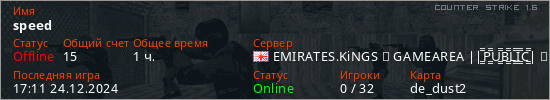 Играет на Counter Strike 1.6 сервере. Страна: ВеликобританияПервый раз замечен 15:32 13.09.2021