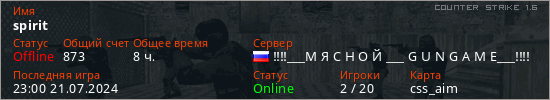 Играет на Counter Strike 1.6 сервере. Страна: РоссияПервый раз замечен 18:58 02.03.2022