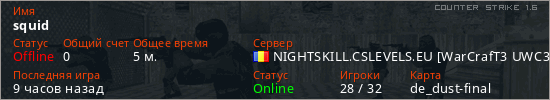 Последний раз был в сети 6 часов назад Игрок с таким ником замечен на 2 серверах