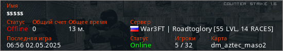 Последний раз был в сети 06:56 02.05.2025 Игрок с таким ником замечен на 36 серверах