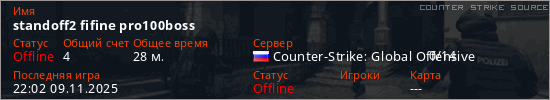 Играет на Counter Strike Source сервере. Страна: РоссияПервый раз замечен 13:28 09.11.2025
