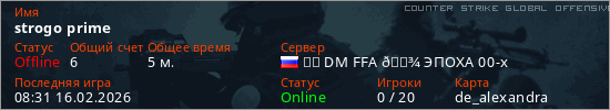 Играет на Counter Strike Global Offensive сервере. Страна: РоссияПервый раз замечен 08:21 16.02.2026