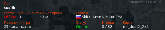 Последний раз был в сети 22 часа назад Игрок с таким ником замечен на 23 серверах