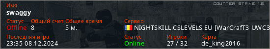 Играет на Counter Strike 1.6 сервере. Страна: РумынияПервый раз замечен 23:31 08.12.2024