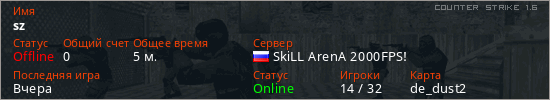 Играет на Counter Strike 1.6 сервере. Страна: РоссияПервый раз замечен 19:51 16.12.2025