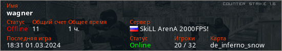 Играет на Counter Strike 1.6 сервере. Страна: РоссияПервый раз замечен 18:50 04.02.2023