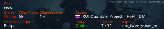 Последний раз был в сети Вчера Игрок с таким ником замечен на 19 серверах