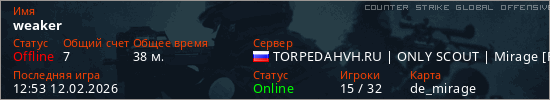 Играет на Counter Strike Global Offensive сервере. Страна: РоссияПервый раз замечен 11:01 05.02.2026