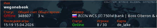 Играет на Counter Strike Global Offensive сервере. Страна: РоссияПервый раз замечен 13:45 23.03.2026