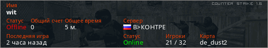Последний раз был в сети Час назад Игрок с таким ником замечен на 4 серверах