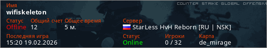 Играет на Counter Strike Global Offensive сервере. Страна: РоссияПервый раз замечен 15:16 19.02.2026