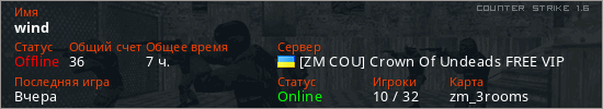 Последний раз был в сети Вчера Игрок с таким ником замечен на 19 серверах