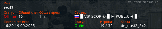 Последний раз был в сети 16:29 19.09.2025 Игрок с таким ником замечен на 9 серверах