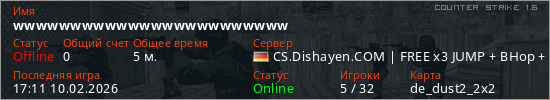 Играет на Counter Strike 1.6 сервере. Страна: ГерманияПервый раз замечен 17:09 10.02.2026