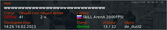 Играет на Counter Strike 1.6 сервере. Страна: РоссияПервый раз замечен 11:43 14.02.2023